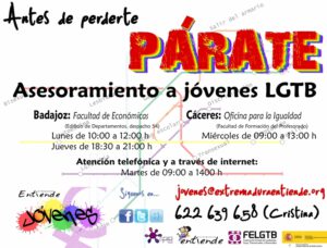 Extremadura Entiende ya tiene puesto en marcha el Servicio de Orientación para Jóvenes LGTB, que durará hasta diciembre de 2013.